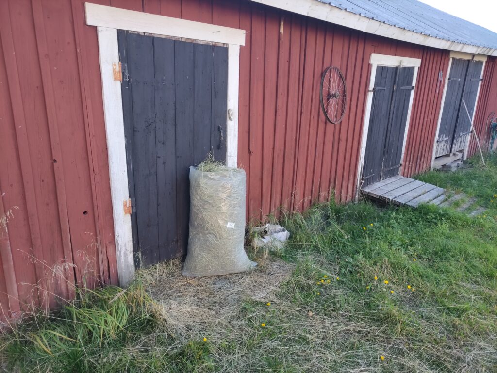Vi säljer hö skördat i juli 2021. Höet innehåller olika örter och gräs och lämpar sig väldigt bra till smådjur som marsvin och kaniner. Även getter verkar extra förtjusta i vårt hö. Eftersom kvantiteten hö är liten och vi vill att höet ska räcka till smådjuren säljer vi inte större partier hö. Vi säljer hela året eller så länge lagret räcker.